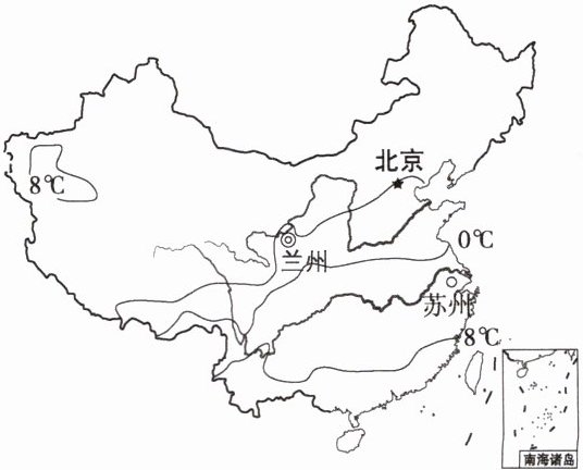 (2024·福建龙岩中考)兰州和苏州相距遥远,两地却在饮食方面有个相同点——早餐习惯吃一碗热腾腾的面,配料区别在于兰州牛肉面多用牛肉与辣椒,苏州炒浇面多用鱼虾水产。读我国1月等温线分布图,完成第3—4题。