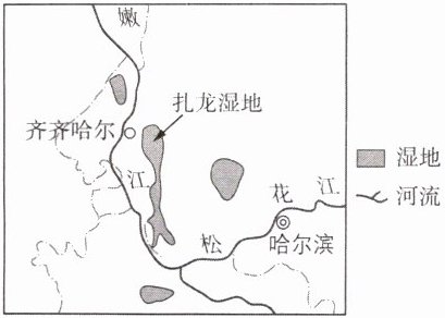扎龙国家级自然保护区位于黑龙江省嫩江流域,属中温带季风气候区。嫩江每年有春汛和夏汛两个汛期。保护区内湖泊星罗棋布,河道纵横,水质清澈,苇草丛生,沼泽湿地生态保持良好,被誉为禽鸟的“天然乐园”。读黑龙江省局部地区河流、湿地的分布示意图,完成第 15—16 题。