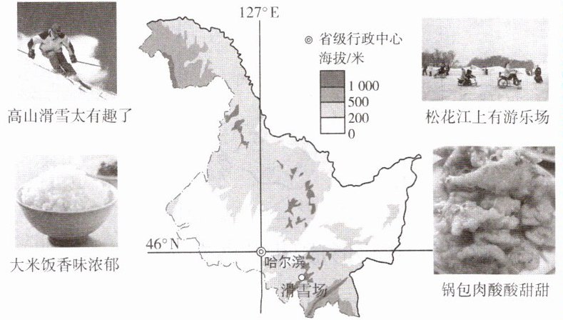18. (2024·上海中考)2024 年寒假期间,来自上海的小东同学和父母在黑龙江省体验了冰雪之旅的乐趣。读图,完成相关问题。