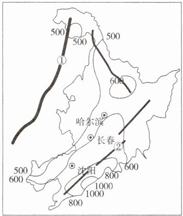 (1)根据图中年等降水量线的分布,总结本区域降水分布规律: