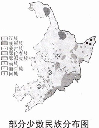 2. 赫哲族和鄂伦春族的集中分布区分别是(