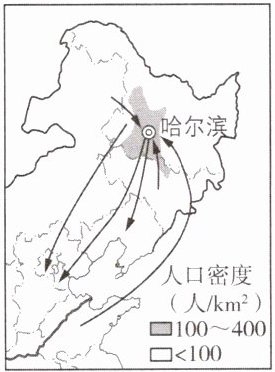 9. 中国19世纪开始的国内人口迁移,使东北人口由1897年的700多万猛增至1933年的2910万,是我国近代最大的一次移民浪潮,被称为“闯关东”。1949年以后,中国也向东北等地进行了有组织的移民。读黑龙江省人口跨省流动示意图和人口密度示意图,完成相关问题。