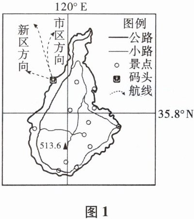 青岛市周围海域岛屿众多。同学们对青岛的$L$岛(图$1$)进行了调查研究。该岛面积约为$8$平方千米,距陆地最近处约$10$千米,是我国北方第一高岛。该岛耕地稀少,目前居民以打鱼和海水养殖为主,地质类型独特,旅游资源丰富。因交通不便、水资源和能源短缺等条件限制,该岛的旅游资源的开发不足。