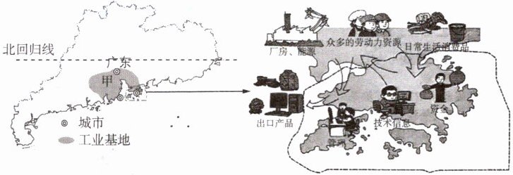 12. 读广东省及周边略图和香港与祖国内地优势互补图,完成相关问题。
