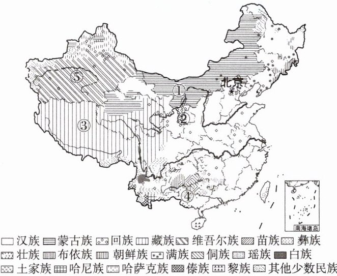 ,是我国分布最广的少数民族。(2)③处的主要少数民族是
