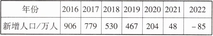 (1) 据表可知,2016—2022 年,我国新增人口在不断