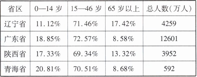 【新情境·人口政策】2024 年 9 月 13 日,第十四届全国人民代表大会常务委员会第十一次会议决定,从 2025 年 1 月 1 日起实施延迟退休政策。读我国第七次人口普查部分省份数据表,完成第 4—6 题。