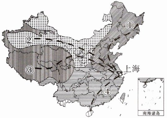 (1)写出图中数字代表的山脉的名称。