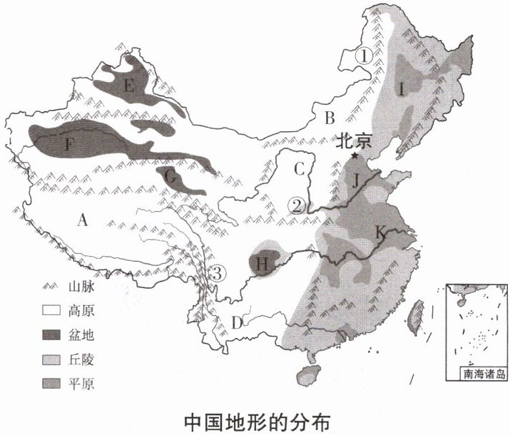 10. 读我国主要地形区分布示意图,完成相关问题。
