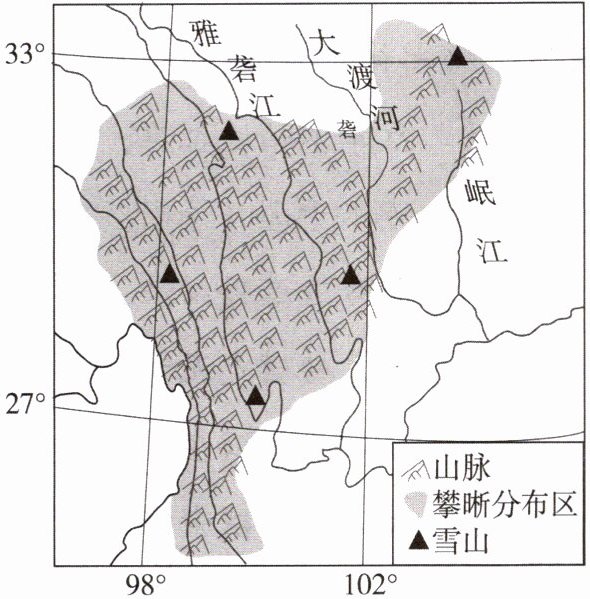 13. 山脉是地形的骨架。下列关于图示地形区的判断,正确的是(