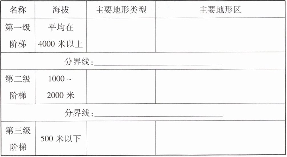 2. 三级阶梯海拔、地形类型、主要地形区和分界线