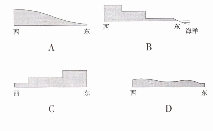 1. 下列4幅地形剖面图中,能反映我国地势特点的是(