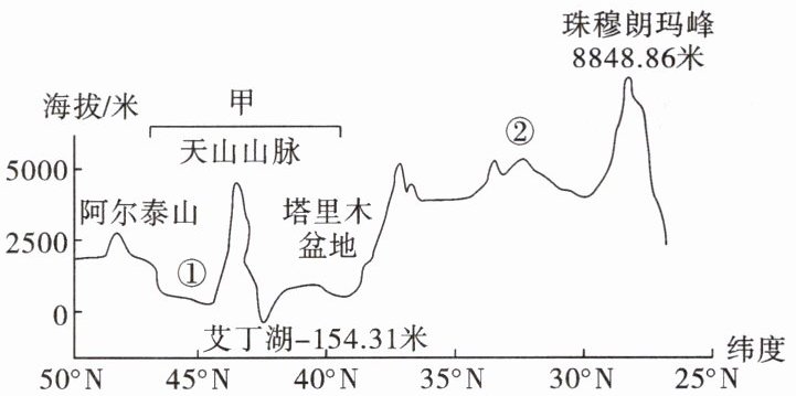 14. 世界陆地最高点与我国陆地最低点的相对高度是(