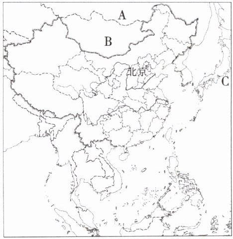 2. 与图示A、B、C 3个国家相比,我国的地理位置有很多优越性。下列说法正确的是(