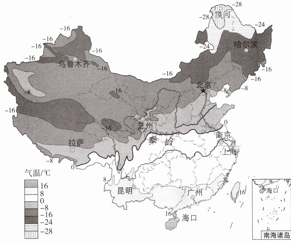 线分布。(4) 冬季最冷的地方是黑龙江省