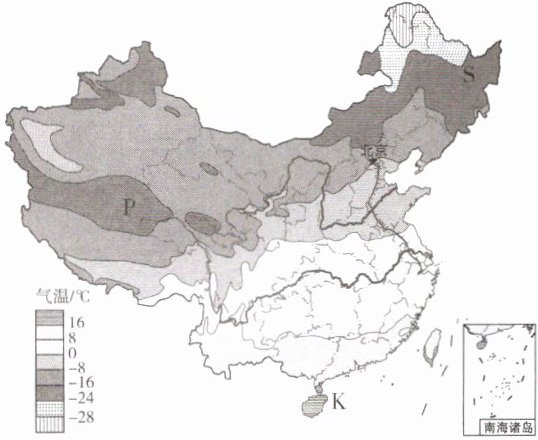 读我国1月平均气温图,完成第1—4题。