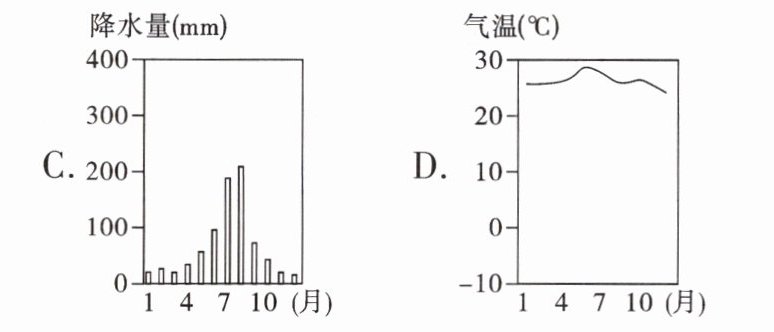 2. 下列4幅图中,表示降水年际变化的是(