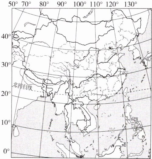 (2)我国领土南北跨越的纬度近50度,大部分地区位于北温带,小部分地区位于热带,没有地区位于寒带,热量充足,南北气候差异大,为农业生产的多样性提供了条件。