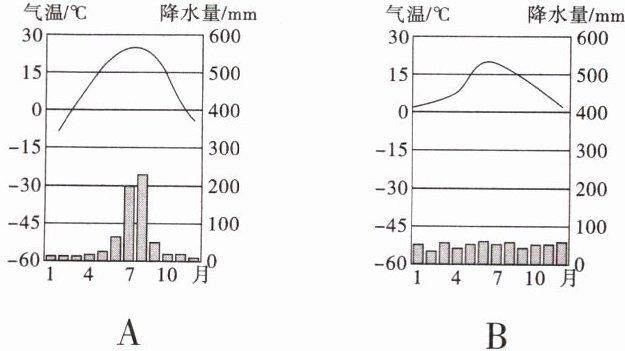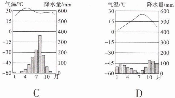 11. 画中所描绘地区的气温曲线和降水量柱状图最可能是(