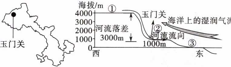 玉门关位于我国甘肃西部,最早是汉武帝开通西域道路时设置的一道重要的关隘,地处河西走廊最西端。读玉门关位置示意图和沿玉门关所在纬度作的地势剖面图,据图完成第 7—9 题。