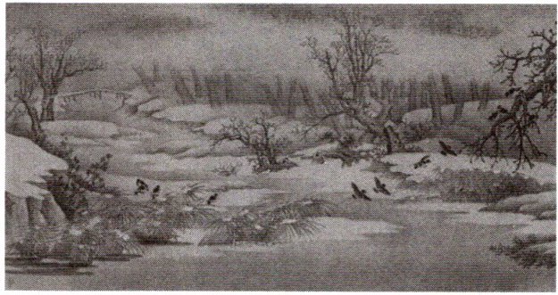 10. 画中景象除了描绘“群鸦寒塘”,还涉及的地理要素有(
