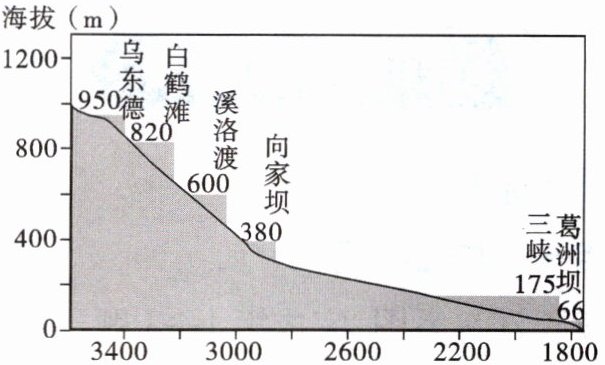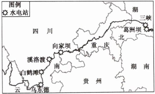 (2024·山东青岛中考)长江干流上的 6 座巨型梯级水电站,是实施“西电东送”的国家重大工程之一,将大量电力输送到电力紧缺的我国东部地区。下图示意长江干流上的 6 座巨型梯级水电站。据此完成第 12—14 题。
