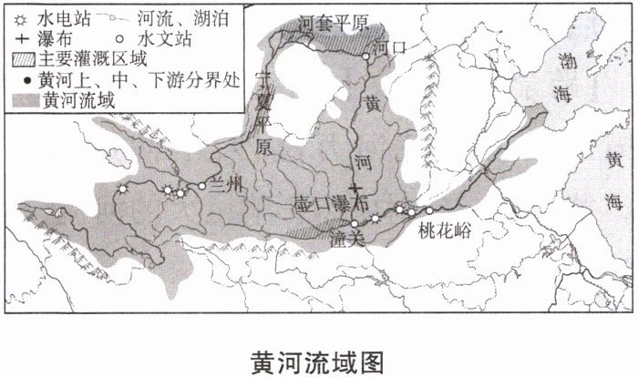 海。(2)划分黄河上、中、下游河段的地点:①是