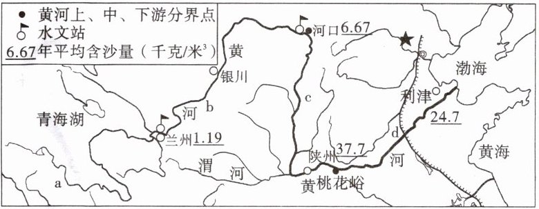 黄河是中华文明的摇篮,但又被称为“中国的忧患”。读黄河不同河段水文站测得的河流含沙量图,完成第5—6题。