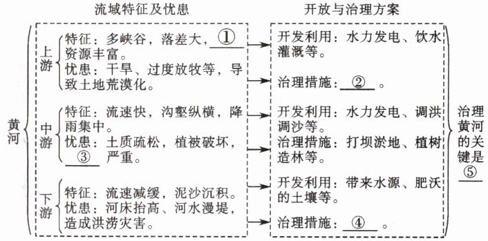 (3)知识准备:绘制黄河干支流简图,完成基本信息填注。