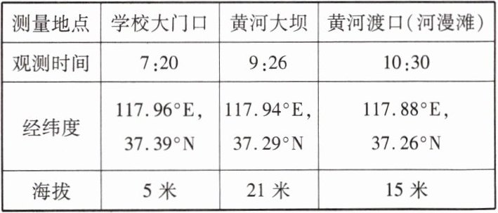 (1)数据测量:测量不同地点的海拔、经纬度数据,填写到下表中。