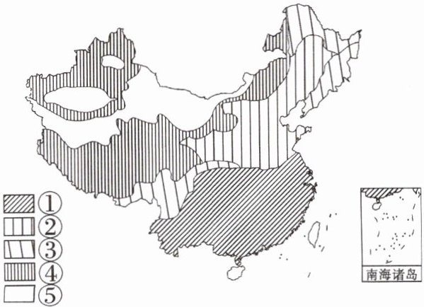 (2)林地 森林生长时需水量大,而我国西北地区年降水量较少,大部分属于干旱、半干旱地区,所以没有大面积林地分布。