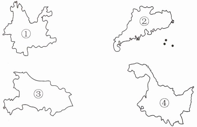 读我国部分省级行政区域单位轮廓简图,完成第 7—9 题。