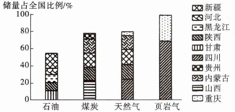 近年来,我国不断推进矿业领域绿色发展,矿产资源的勘探开发取得重要进展。下图示意我国已探明的主要能源矿产储量地区分布(截至2021年底),据此完成第2—4题。