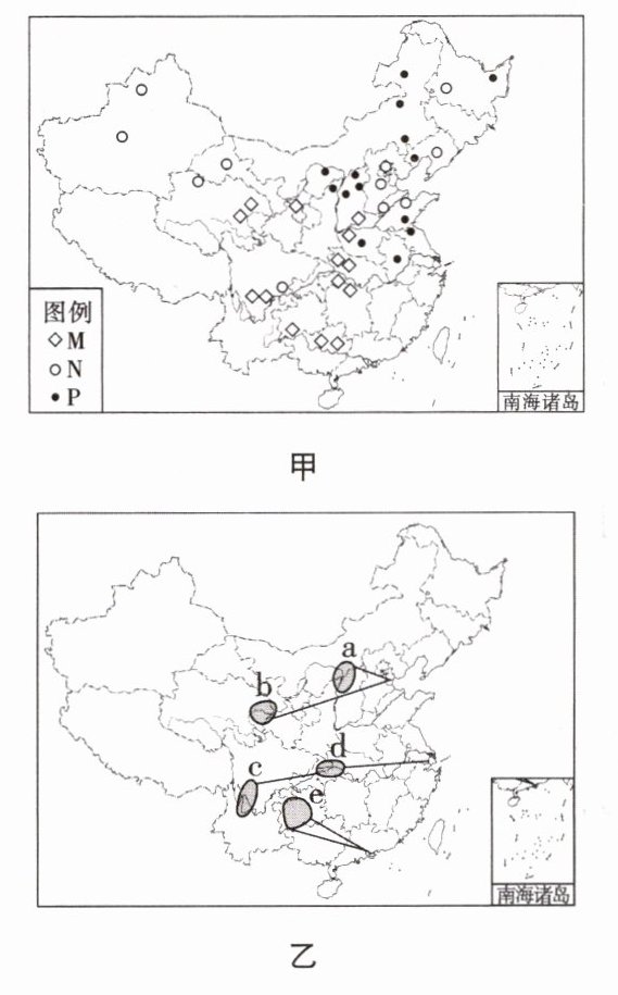 (1)甲图是我国石油、煤炭和水能的分布图。请根据其分布状况推断:图例M代表