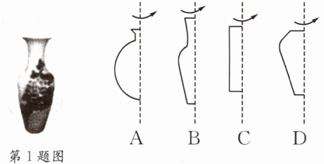 1. 如图是一个花瓶,下列平面图形绕虚线旋转一周,能形成这个花瓶形状的是 (