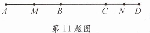11. 如图,B、C是线段AD上任意两点,M是AB的中点. N是CD的中点. 若$ MN = a $,$ BC = b $,则线段AD的长是(