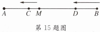 15. 如图,M是线段AB上一定点,$ AB = 12 cm $,C、D两点分别从M、B同时出发,以$ 1 cm/s $、$ 2 cm/s $的速度沿直线BA向左运动(点C在线段AM上,点D在线段BM上).