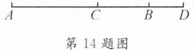 14. 如图,B、C为线段AD上的点,C是AD的中点,且$ AB = 8 cm $,$ BD = 2 cm $.