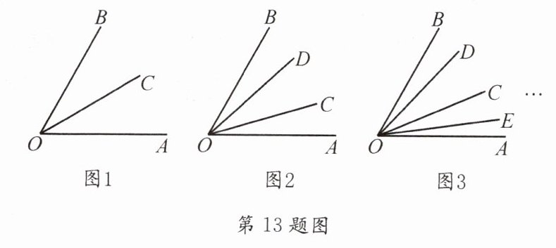 13. (1) 在∠AOB 内部画 1 条射线 OC,则图 1 中有
