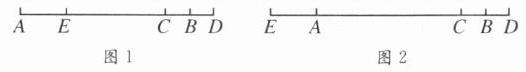 (2)若点E在线段AD上,如图1.因为EA=2cm,AD=8cm,所以ED=AD−EA=8−2=6(cm).因为BD=1cm,所以BE=ED−BD=6−1=5(cm).若点E在线段DA的延长线上,如图2.因为EA=2cm,AD=8cm,所以ED=EA+AD=2+8=10(cm).因为BD=1cm,所以BE=ED−BD=10−1=9(cm).综上所述,BE的长为5cm或9cm.