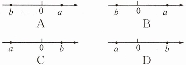 例1 已知 $ a 、 b $ 是不为 $ 0 $ 的有理数,且 $ | a | = - a $,$ | b | = b $,$ | a | > | b | $,那么用数轴上的点来表示 $ a 、 b $ 时,正确的是 (