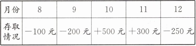 10. 去年7月份小明到银行开户,存入 $1500$ 元钱,以后每月的存取情况如下表所示(正的代表存入,负的代表支出):