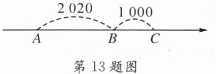 .(3)数轴上从左到右的三个点 $A$、$B$、$C$ 所对应的数分别为 $a$、$b$、$c$. 其中 $AB = 2020$,$BC = 1000$,如图所示.