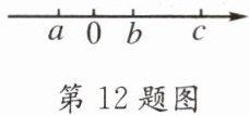 12. 有理数 $a$、$b$、$c$ 对应的点在数轴上的位置如图所示,且 $a$、$b$ 互为相反数.