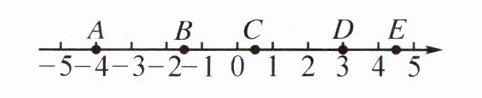 (1)A、B、C、D、E分别表示:$-4$,$-1.5$,$0.5$,$3$,$4.5$.
