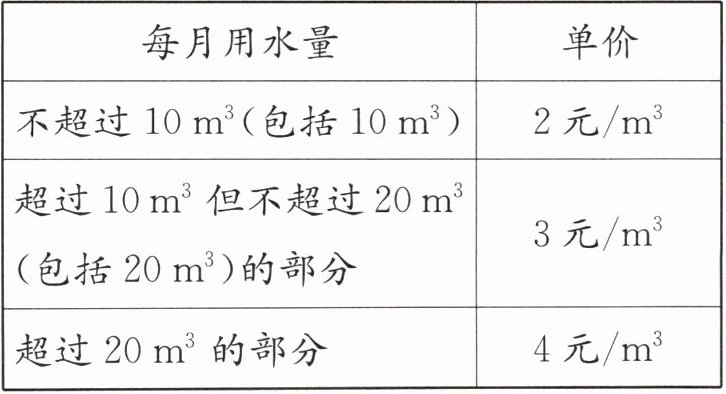 当用水量超过20m³,即x>20时,应付水费10×2+10×3+4·(x-20)=(4x-30)元.