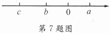 7. 已知有理数$a$、$b$、$c$在数轴上的位置如图所示,且$\vert a\vert=\vert b\vert$。