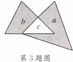 3. 如图,两个大小不同的三角形的面积分别为 $ 2m^2 + m + 1 $ 和 $ m^2 + m - 1 $,重叠部分的面积为 $ c $,不重叠部分的面积分别为 $ a $ 和 $ b(a > b) $,则 $ a - b $ 等于(