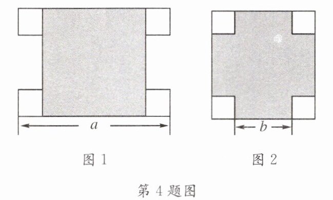 4. 把一个大正方形和四个相同的小正方形按图 1、2 两种方式摆放,则大正方形的周长与小正方形的周长的差是(