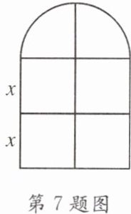 7. 窗户的形状如图(图中长度单位:$ cm $),其中上部是半圆形,下部是边长相同的四个小正方形。已知下部小正方形的边长为 $ x cm $。